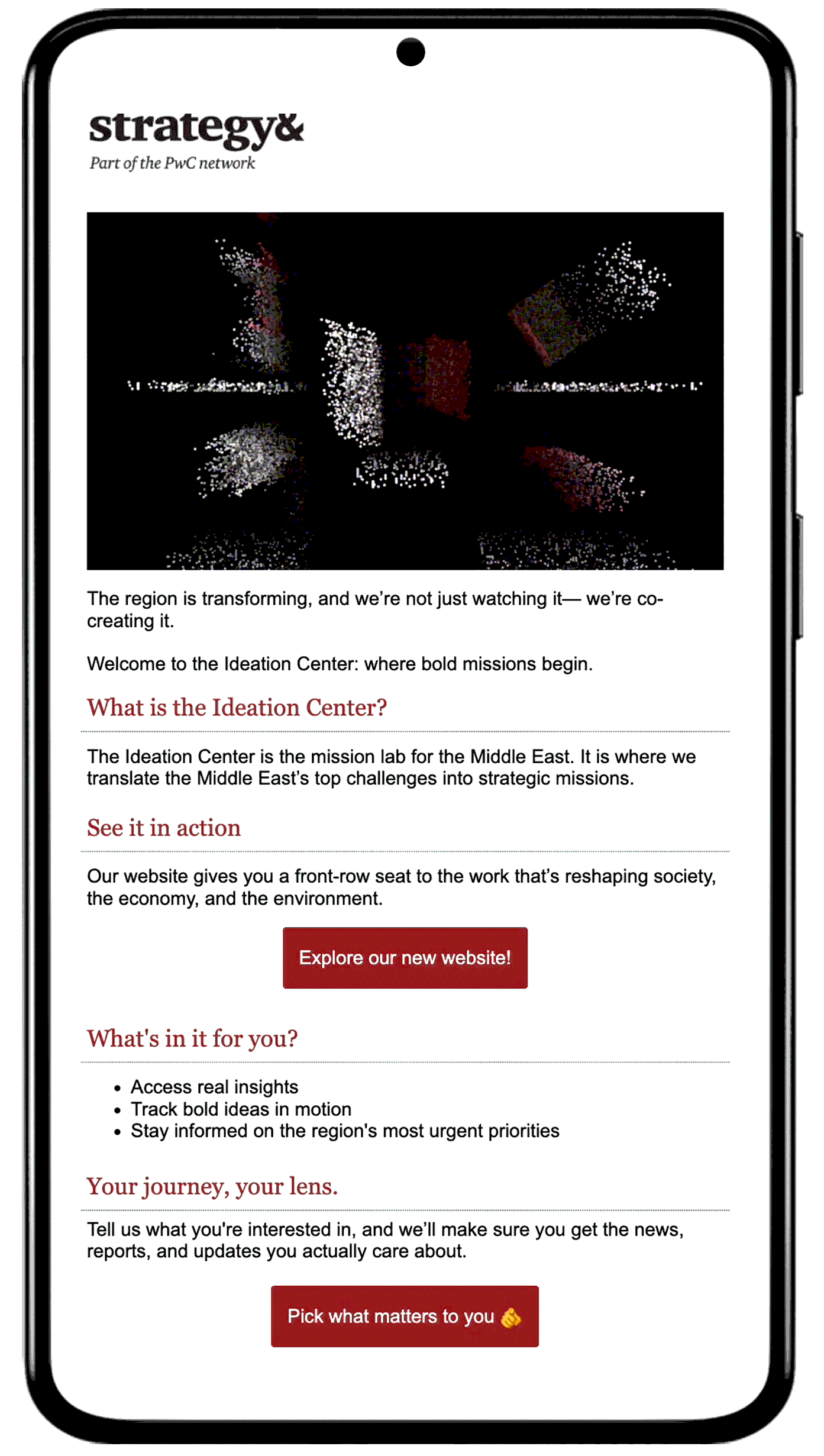 This is your space to tell us what you are curious about. The Ideation Center explores what’s next for the Middle East, and we’ll keep you connected through stories, tools, and insights curated just for you.